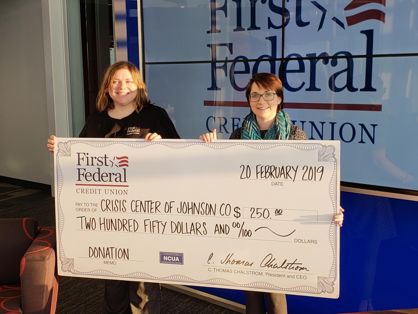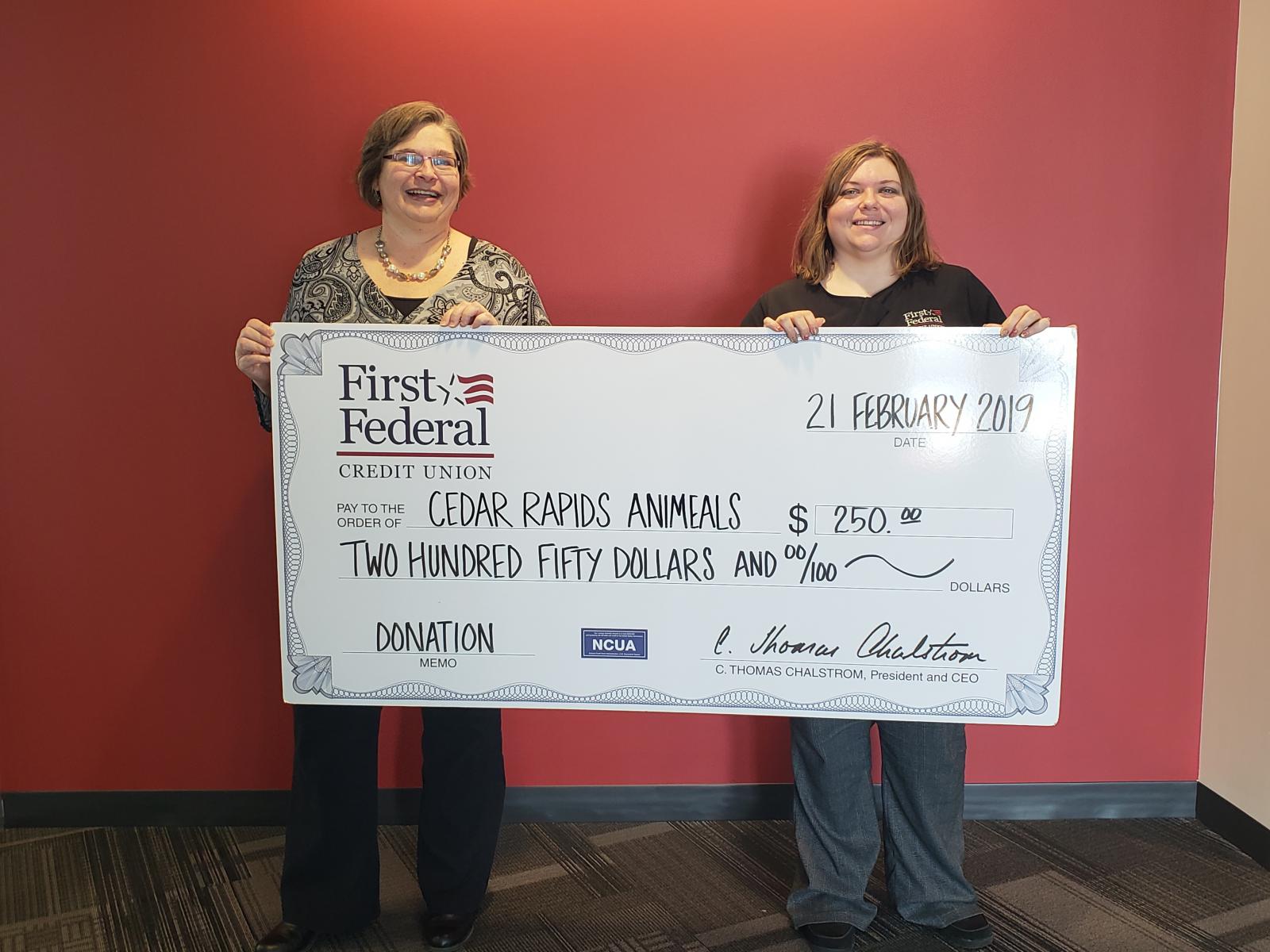 Greta, the recipient of the 2018 Volunteer of the Year Award was given $500 to donate to any charity. She choose to split her money between two of her favorite charities! $250 was donated to the Johnson County Crisis Center. The other $250 was donated to Cedar Rapids Animeals.