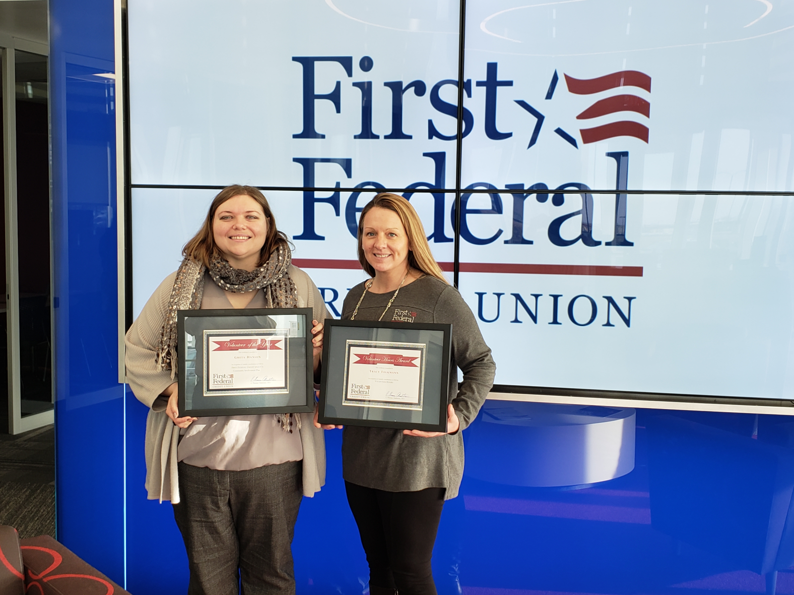 Congratulations to Greta Hanson this years Volunteer of the Year Award winner! Greta has spent the past year training and volunteering at a crisis hotline. Tracy Yordi for the second year in a row was awarded Most Volunteer Hours at the Credit Union!